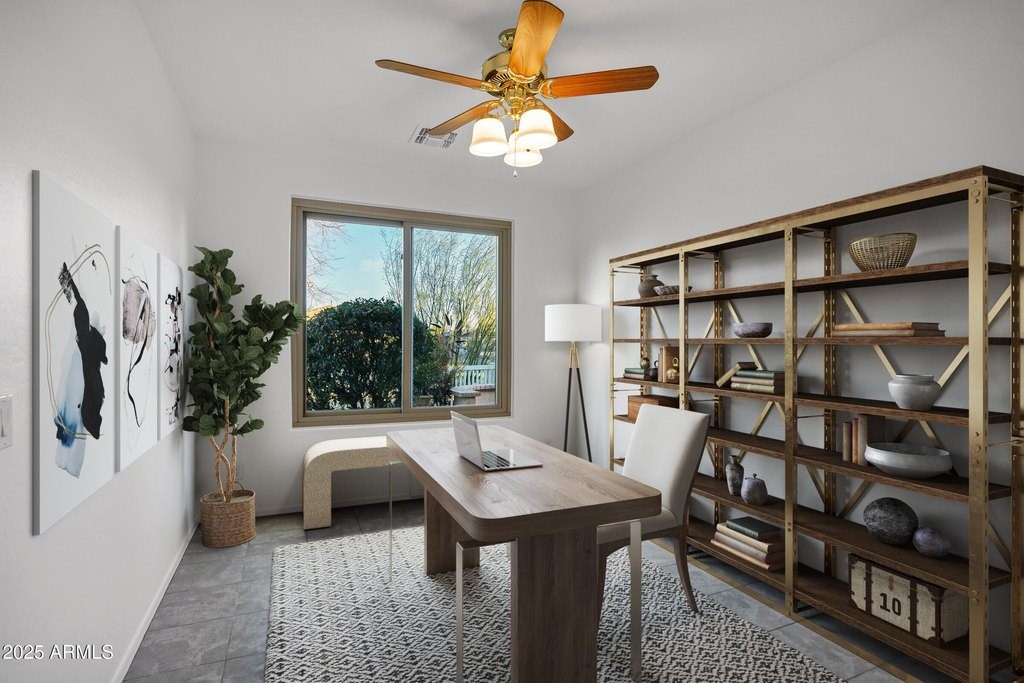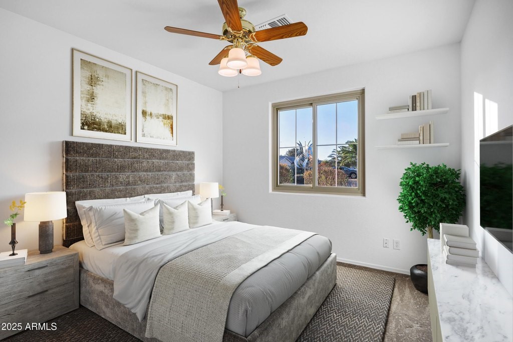 BRAND NEW HVAC JUST INSTALLED! Highly upgraded home on the greenbelt with a spectacular upgraded backyard and front courtyard for enjoying the amazing Arizona weather! The popular Iris floor plan offers two full bedrooms plus two additional flex rooms that could be used as additional bedrooms or a den or hobby room. Huge open great room to kitchen with white cabinets, granite countertops and stainless steel appliances. The entire home has been freshly painted and has all new windows and a gas fireplace in the great room. Beautiful, elegant custom front iron door welcomes you into this well maintained home. The backyard is an entertainer's dream with an extended paver patio with a built in gas bbq and gas fire pit along with mature landscaping and artificial turf.